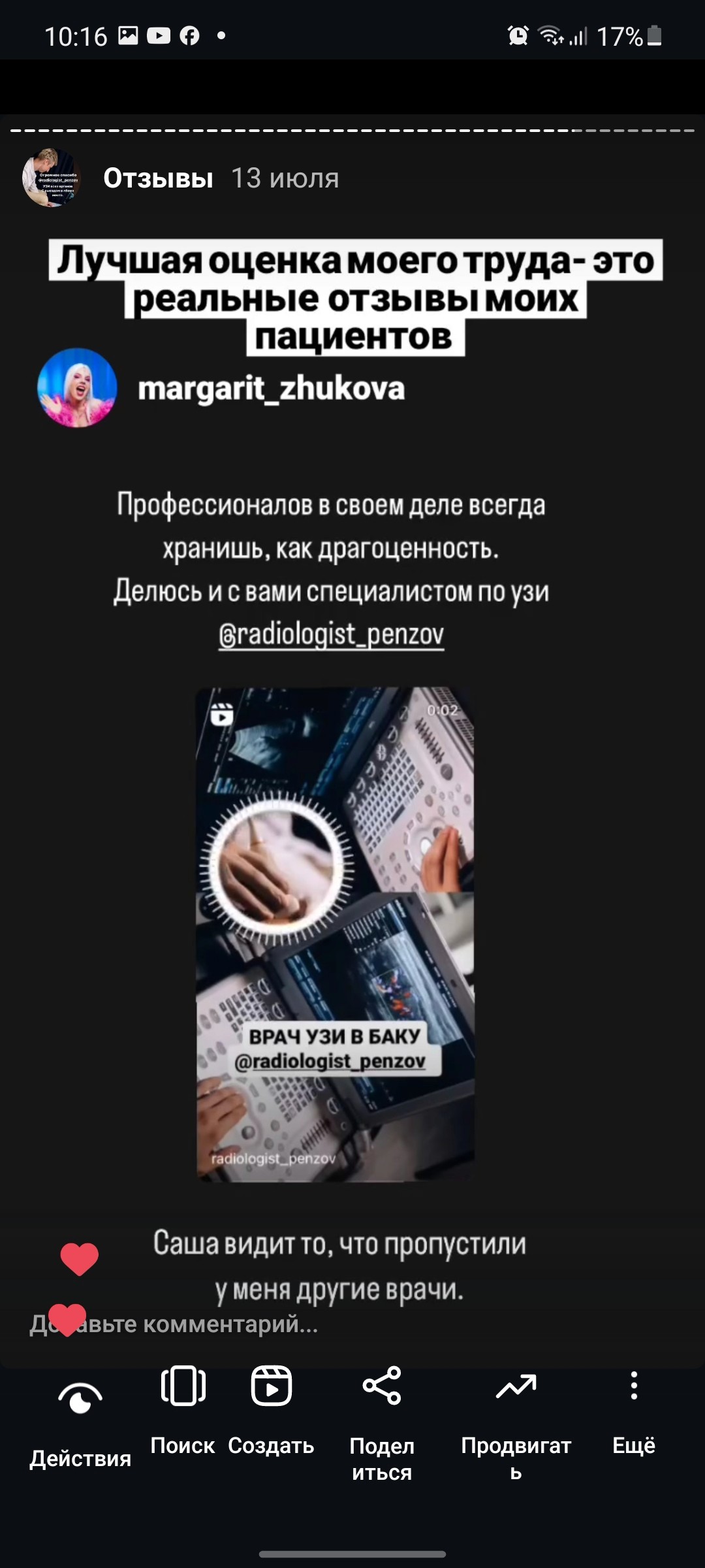 В настоящее время занимается научной деятельностью в области лучевой диагностики, развивает направление в радиологии для врачей. Руководитель образовательного направления "Лучевая диагностика", эксперт по оборудованию УЗИ, МРТ и КТ, является преподавателем.